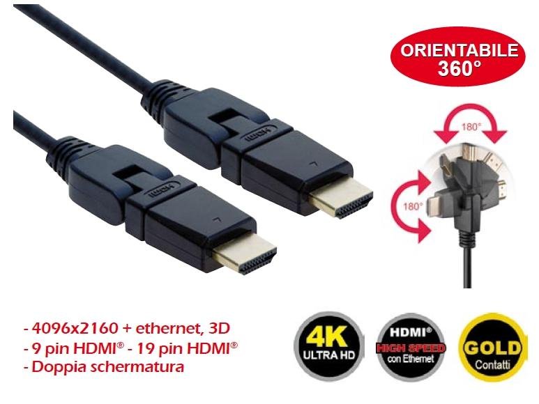 CAVO SP.HDMI - SP.HDMI L. 5,0m ORIENTAB. 36