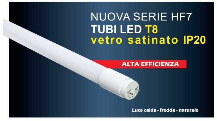 TUBO LED T8 serie HF7 in Vetro Satinato, 18
